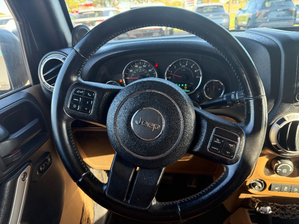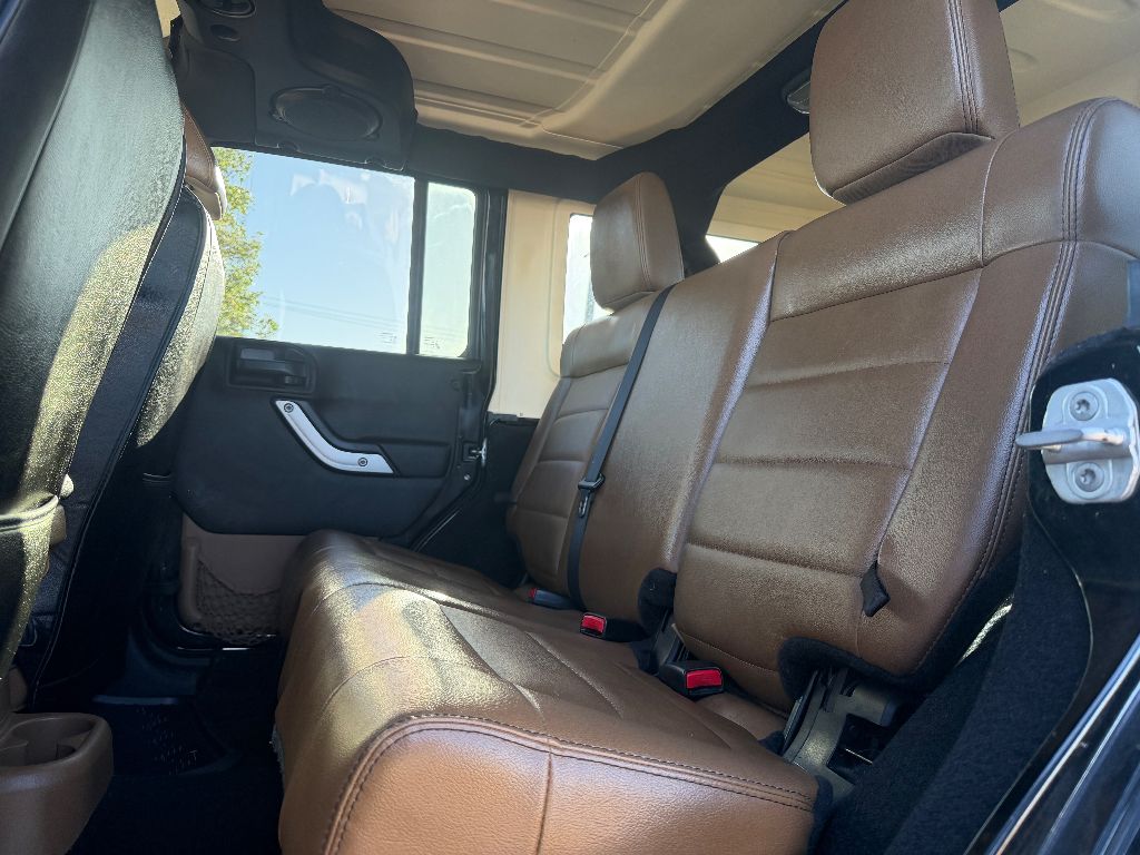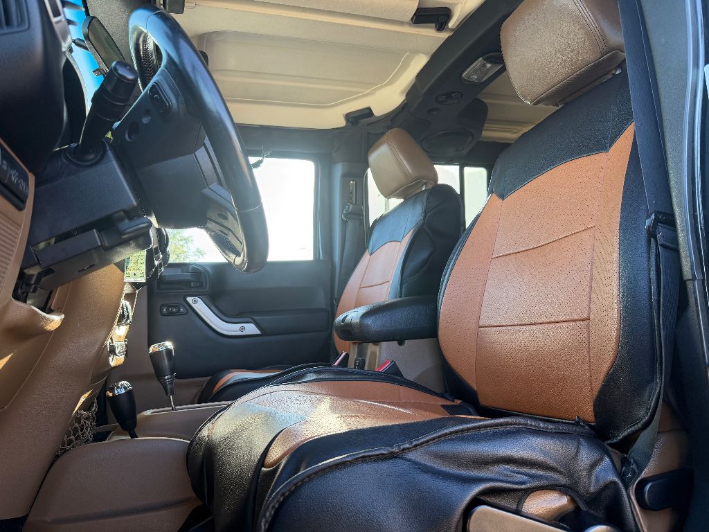 Never get into a cold vehicle again with the remote start feature on this Jeep Wrangler Unlimited. The leather seats in this unit are a must for buyers looking for comfort, durability, and style. It keeps you comfortable with Auto Climate. The installed navigation system will keep you on the right path. The Jeep Wrangler Unlimited features a hands-free Bluetooth phone system. When you encounter slick or muddy roads, you can engage the four wheel drive on this model and drive with confidence. It has a V6, 3.8L high output engine. Set the temperature exactly where you are most comfortable in this 1/2 ton suv. The fan speed and temperature will automatically adjust to maintain your preferred zone climate. This model has fog lights for all weather conditions. This Jeep Wrangler Unlimited is equipped with a gasoline engine. This vehicle features cruise control for long trips. This 1/2 ton suv has an automatic transmission.