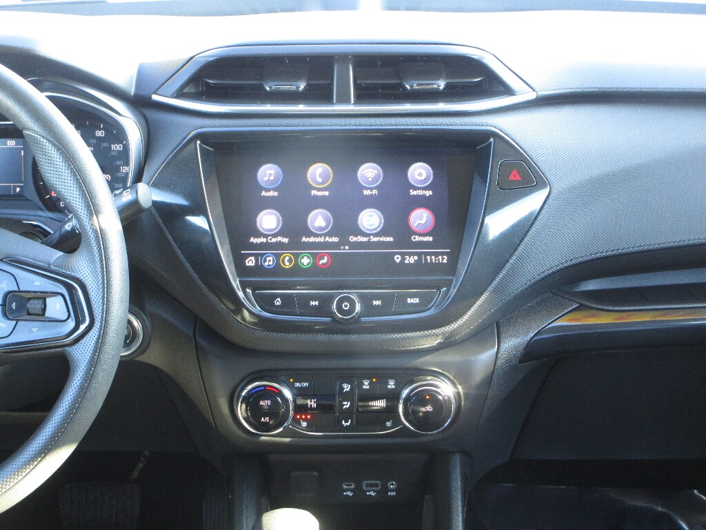 The Chevrolet TrailBlazer offers Automatic Climate Control for personalized comfort. This model has an automatic transmission. See what's behind you with the back up camera on this vehicle. This model is painted with a sleek and sophisticated black color. Maintaining a stable interior temperature in the vehicle is easy with the climate control system. Easily set your speed in it with a state of the art cruise control system. Increase or decrease velocity with the touch of a button. The Electronic Stability Control will keep you on your intended path. This mid-size suv has a 3 Cyl, 1.3L high output engine. The fog lights cut through the weather so you can see what's ahead. Front wheel drive on it gives you better traction and better fuel economy. It is equipped with a gasoline engine. Bluetooth technology is built into this Chevrolet TrailBlazer, keeping your hands on the steering wheel and your focus on the road. The vehicle's Lane Departure Warning keeps you safe by alerting you when you drift from your lane. Lane Keep Assist in this model helps maintain safe driving by gently steering to stay within the lane. With the adjustable lumbar support in this vehicle your back will love you. The spacious cabin accommodates your family and friends in comfort. Take it to the mountains or the beach. this 2023 Chevrolet TrailBlazer can handle it all. This unit is outfitted with an OnStar communication system. Never get into a cold vehicle again with the remote start feature on the vehicle.