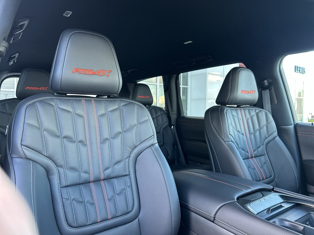 Captain's Chair Seat Package: 2nd Row Outboard Captain's Chairs with Armrests; 2nd Row Center Console with Two Cupholders; EZ Flex Second Row Seating System with One Touch Release. Premium Paint and 2-Tone Roof. Cross Bars. PRO-4X Carpeted Floor Mats with Captain's Chair. Illuminated Kick Plates. PRO-4X Mud Guards. Rear Bumper Protector. **Equipment listed is based on original vehicle build and subject to change. Please confirm the accuracy of the included equipment by calling the dealer prior to purchase.**