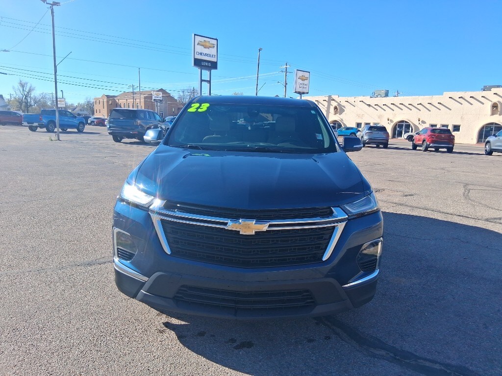 This Chevrolet Traverse features a hands-free Bluetooth phone system. This model keeps you comfortable with Auto Climate. The Chevrolet Traverse offers Android Auto for seamless smartphone integration. Lane Keep Assist in this vehicle helps maintain safe driving by gently steering to stay within the lane. The rear parking assist technology on this Chevrolet Traverse will put you at ease when reversing. The system alerts you as you get closer to an obstruction. See what's behind you with the back up camera on it. This vehicle offers Apple CarPlay for seamless connectivity. This 1/2 ton suv has a V6, 3.6L high output engine. The vehicle is front wheel drive. Set the temperature exactly where you are most comfortable in the vehicle. The fan speed and temperature will automatically adjust to maintain your preferred zone climate. Quickly unlock this model with keyless entry. This 2023 Chevrolet Traverse shines with an exquisite blue finish.