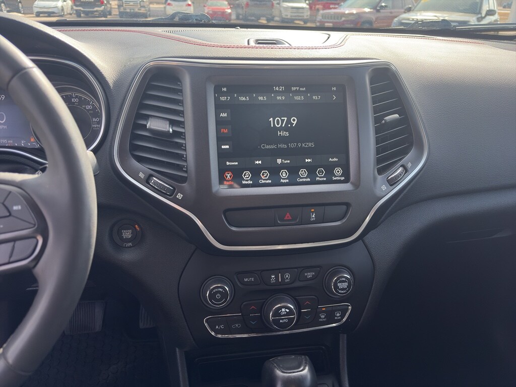 Apple CarPlay: Seamless smartphone integration for the Jeep Cherokee - stay connected and entertained on the go! This 2022 Jeep Cherokee features a hands-free Bluetooth phone system. An off-road package is equipped on this vehicle. Start it from inside with remote start. The Jeep Cherokee's Lane Departure Warning keeps you safe by alerting you when you drift from your lane. The Jeep Cherokee offers Android Auto for seamless smartphone integration. Keep your hands warm all winter with a heated steering wheel in this mid-size suv . See what's behind you with the back up camera on this model. This 2022 Jeep Cherokee 's Forward Collision Warning feature alerts drivers to potential front-end collisions. The state of the art park assist system will guide you easily into any spot. This vehicle keeps you comfortable with Auto Climate. This unit has an elegant black exterior finish. This mid-size suv has a V6, 3.2L high output engine.See what's behind you with the back up camera on this Jeep Cherokee.