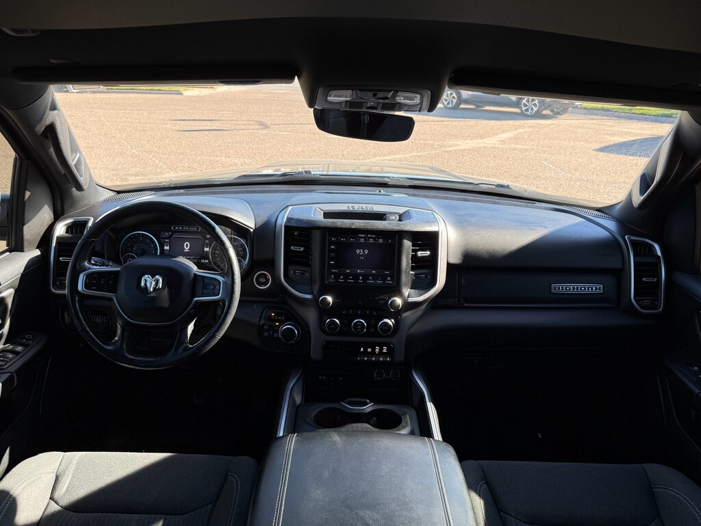 Quick Order Package 25Z Big Horn/Lone Star: Steering Wheel Mounted Audio Controls. Big Horn Level 2 Equipment Group: Uconnect 4 Radio with 8.4 Display; Rear Window Defroster; Integrated Center Stack Radio; ParkSense Front/rear Park Assist with Stop; Rear View Auto Dim Mirror; Power Adjustable Pedals; Rear Power Sliding Window; Rear Dome with On/off Switch Lamp; Glove Box Lamp; Power 4-Way Driver Lumbar Adjust; 115V Auxiliary Rear Power Outlet; Power 8-Way Driver Seat; 2 USB Full Function/charge Only Media Hub; Heated Front Seats; Heated Steering Wheel; 8.4 Touchscreen Display; Foam Bottle Insert (door Trim Panel); Class IV Receiver Hitch; Dampened Tailgate; Security Alarm; Power Heated Fold Away Mirrors; Big Horn Instrument Panel Badge; Remote Start System; SiriusXM Satellite Radio; 400W Inverter; Air Conditioning ATC with Dual Zone Control; 115V Auxiliary Power Outlet; Cluster 7.0 TFT Color Display; Universal Garage Door Opener; Single Disc Remote CD Player; Sun Visors with Illuminated Vanity Mirrors. 20 X 9 Aluminum Chrome Clad Wheels. Deluxe Cloth Bucket Seats. ParkSense Front/rear Park Assist with Stop. Single Disc Remote CD Player. Remote Start System. Rear Wheelhouse Liners. Diamond Black Crystal PC. **Equipment listed is based on original vehicle build and subject to change. Please confirm the accuracy of the included equipment by calling the dealer prior to purchase.**