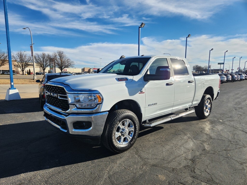 This 2024 Ram 2500 has a clean AutoCheck report. This Ram 2500 features a hands-free Bluetooth phone system. The vehicle is equipped with the latest generation of XM/Sirius Radio. This Ram 2500's AutoCheck: 1 owner, assurance of single-owner history for peace of mind. See what's behind you with the back up camera on this 3/4 ton pickup. Quickly unlock this 3/4 ton pickup with keyless entry. Greater towing safety becomes standard with the installed trailer brake. This Ram 2500 has a 6 Cyl, 6.7L high output engine. This model embodies class and sophistication with its refined white exterior. When you encounter slick or muddy roads, you can engage the four wheel drive on the vehicle and drive with confidence. It has a diesel engine. It has an automatic transmission. The Electronic Stability Control will keep you on your intended path. Easily set your speed in this 3/4 ton pickup with a state of the art cruise control system. Increase or decrease velocity with the touch of a button.