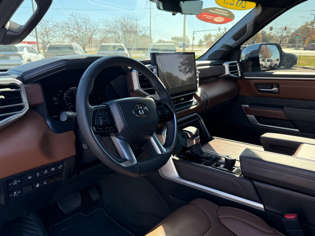 The leather seats in the vehicle are a must for buyers looking for comfort, durability, and style. See what's behind you with the back up camera on the Toyota Tundra. The Toyota Tundra warns of approaching vehicles with Cross-Traffic Alert. This 1/2 ton pickup's blind spot monitor enhances safety. You'll never again be lost in a crowded city or a country region with the navigation system on this vehicle. Apple CarPlay: Seamless smartphone integration for this unit - stay connected and entertained on the go! Bluetooth technology is built into this vehicle, keeping your hands on the steering wheel and your focus on the road. This 2025 Toyota Tundra offers Android Auto for seamless smartphone integration. This 1/2 ton pickup is pure luxury with a heated steering wheel. Set the temperature exactly where you are most comfortable in this 2025 Toyota Tundra . The fan speed and temperature will automatically adjust to maintain your preferred zone climate.